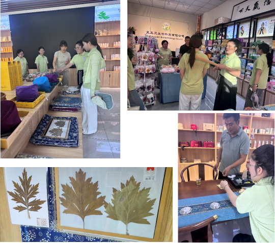 随后,促进团参访了国医大艾各类车间,在参访通道中,“艾草发展”“艾草功效”“艾之起源”等展板依次排开:从艾草的历史演变、医用价值到民俗文化中的应用系统梳理艾草产业的文化脉络。同学们驻足研读展板内容对艾草产业的文化底蕴、发展潜力,对艾草产业的助农潜力有了更深认知。